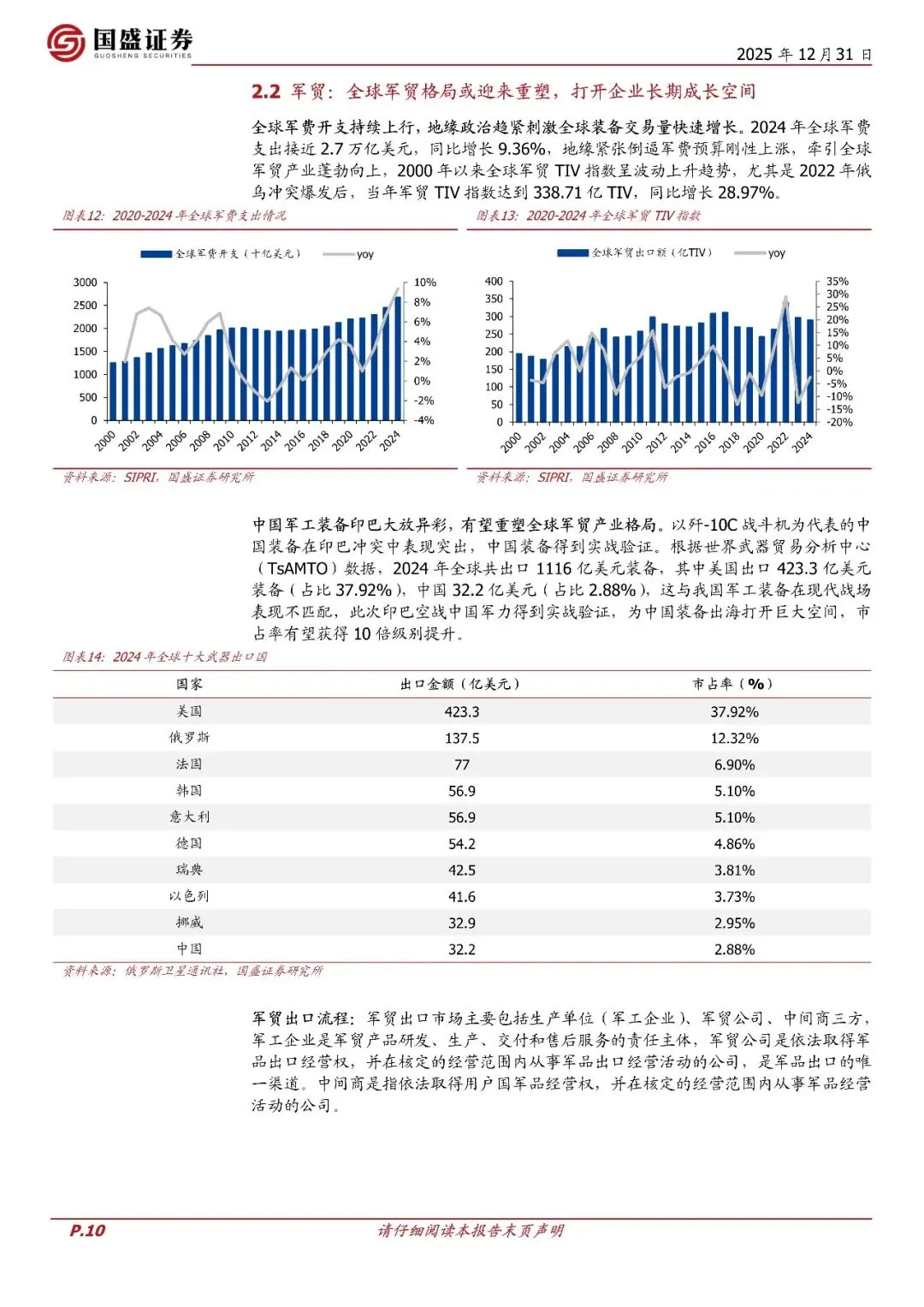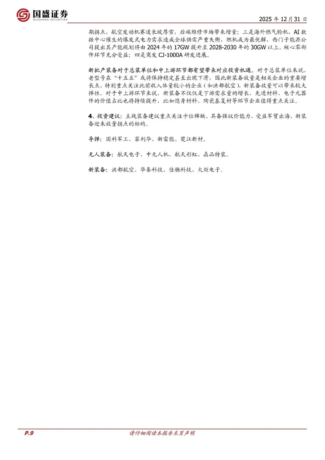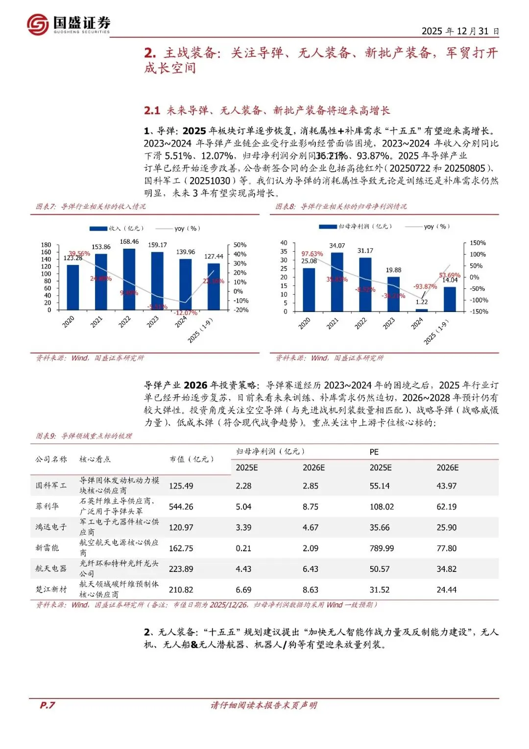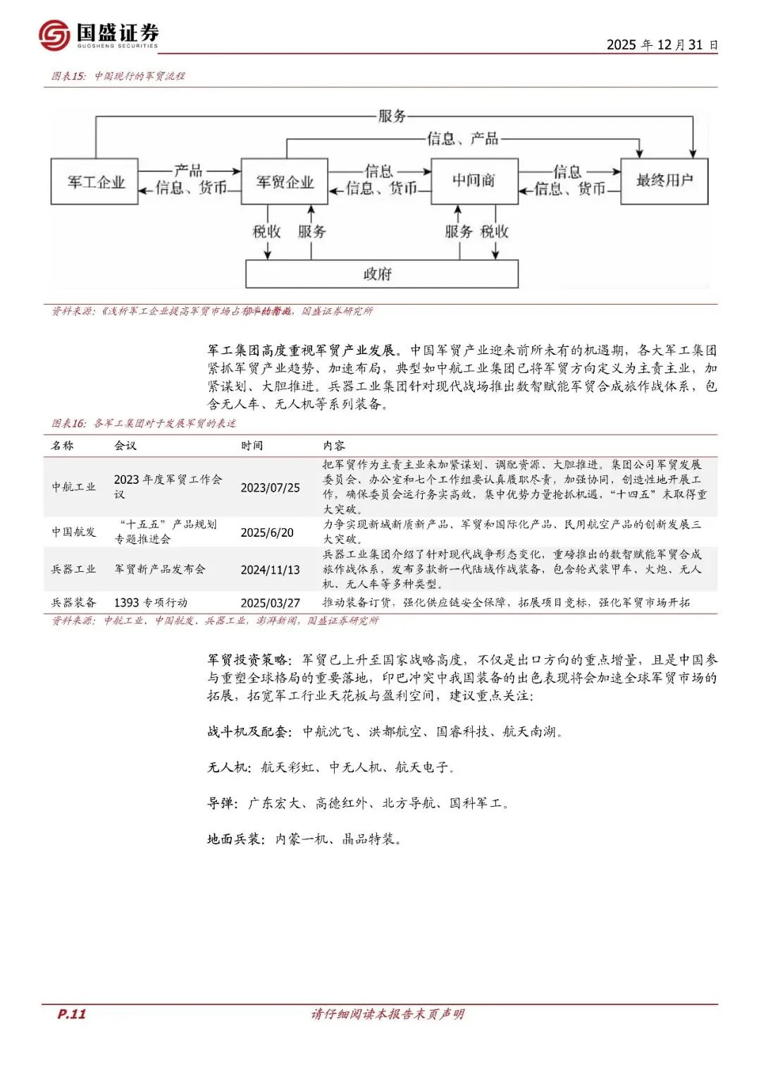 回顾2025年:"十四五"收官之年,市场原预期完成"十四五"积压订单从而基本面反转,然而全年来看军工订单受行业影响仍不及预期。但在2025年印巴冲突等地缘事件影响下,军贸打开行业长期成长空间。总体来说,2025年延续了"十四五"总体上行业影响,基本面发展较为一般,低于预期。