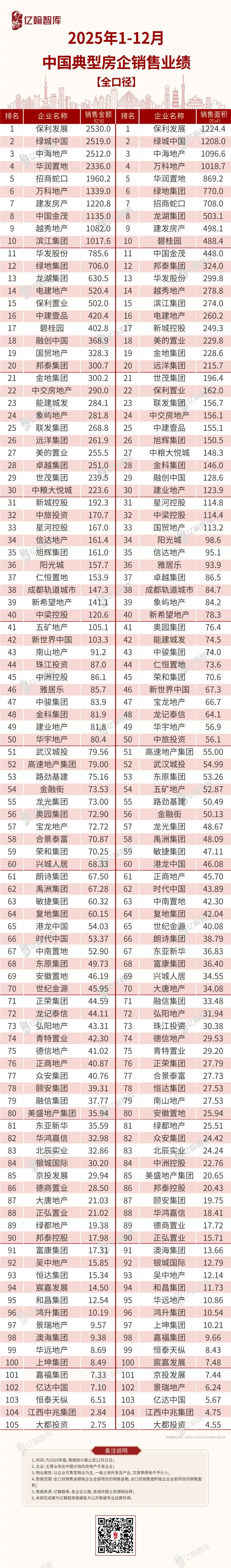 年底房企冲业绩成效显著。2025年12月,105家典型房企里,近七成房企全口径销售金额环比增长,近50%的企业单月销售额环比涨幅超过20%。越秀地产、中建壹品、仁恒置地等企业单月业绩环比涨幅超过100%。