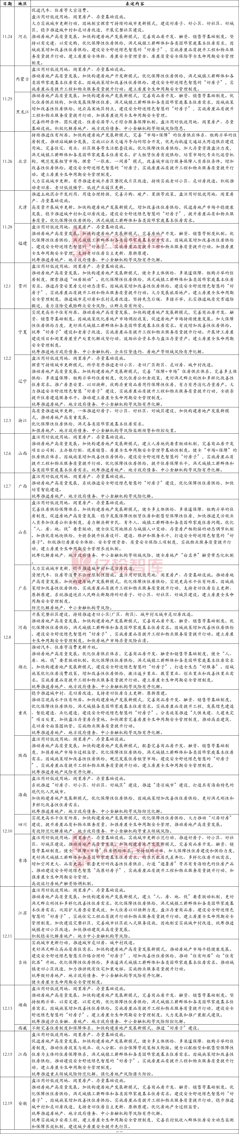 12月10日至11日,中央经济工作会议召开,强调要着力稳定房地产市场,因城施策控增量、去库存、优供给,鼓励收购存量商品房重点用于保障性住房等。深化住房公积金制度改革,有序推动“好房子”建设。加快构建房地产发展新模式。
