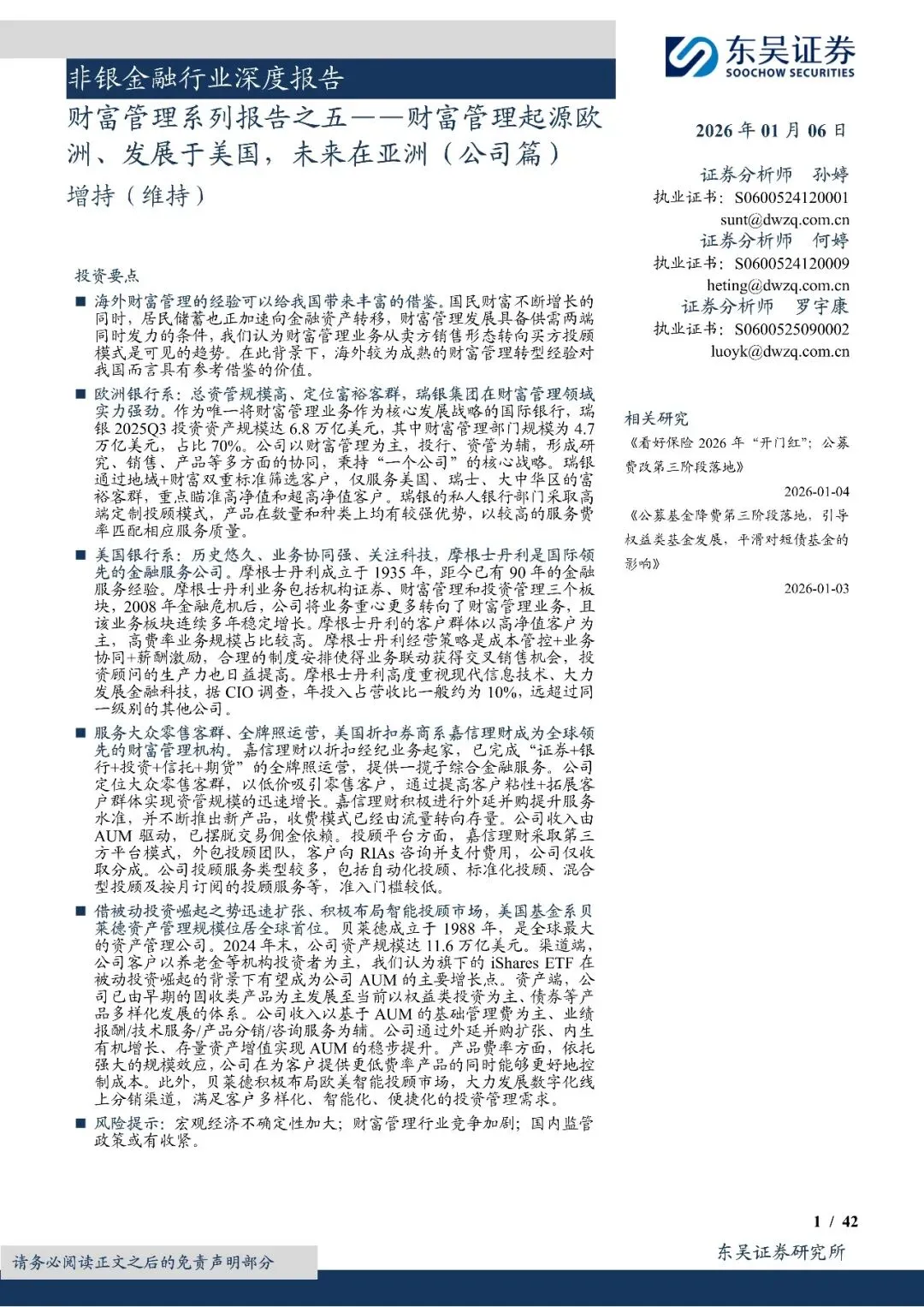 非银金融行业深度报告:财富管理系列报告之五,财富管理起源欧洲、发展于美国,未来在亚洲(公司篇)-260106-东吴证券-42页