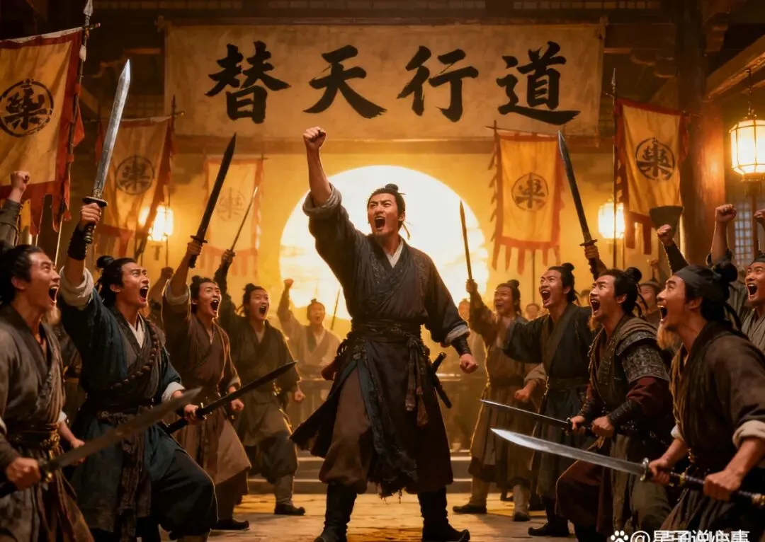 这四字的背后,藏着一股朴素的渴望:既然“人之道”是“损不足奉有余”,那我们就把这颠倒的再颠倒过来!于是就有了劫富济贫、抑强扶弱,有了“农民起义”,有了“打土豪、分田地”,有了“剥夺剥夺者”。从水浒梁山到李自成,从太平天国到近现代革命,多少旗帜上写的,其实都是这同一份心愿——把天该做的事,在人间做出来。