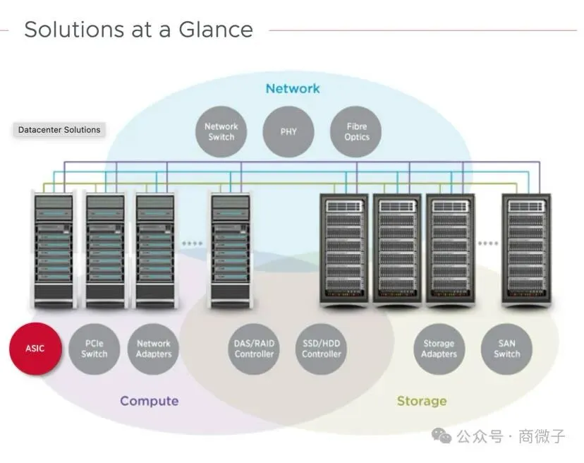 TPU合作催生了博通多元化的AI产品布局:在核心ASIC领域,针对TPU v7/v8系列开发专用定制芯片,覆盖训练(v8ax)与推理(v8x)双场景;在网络配套领域,推出适配TPU集群的224G SerDes交换机芯片与OCS光交换模组,单机价值量达1-2万美元;在系统解决方案领域,整合芯片、网络、电源模块形成机架级AI系统,成功拿下Anthropic等客户的百亿级订单。此外,博通通过收购VMware实现软硬件协同,基础设施软件收入增长47%至67亿美元,为TPU相关解决方案提供软件层面的支撑。