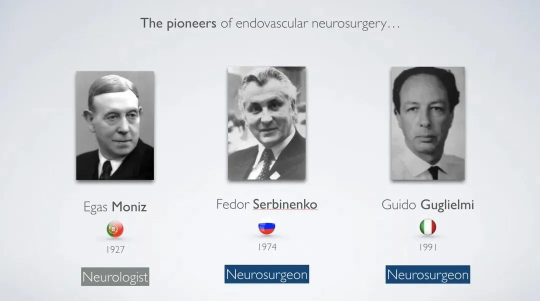 BGC的技术源头可以上溯到神经介入的最早年历史。费奥多尔·谢尔比年科(Fedor Serbinenko)是一位苏联神经外科医生,被誉为“血管内神经外科之父”。1959年莫斯科红场的国际劳动节庆祝活动中,谢尔比年科在观看儿童用系绳操控氦气球时,开始构想小型球囊在迂曲动脉中移动的场景。 通过持续实验,他逐步完善了技术,使用乳胶或硅胶等材料制作不同尺寸的球囊,以适应各种血管病变,如颈动脉海绵窦瘘和脑动脉瘤。 1974年,谢尔比年科在《神经外科杂志》(Journal of Neurosurgery)上发表了开创性论文,详细描述球囊导管在主要脑血管闭塞中的应用,首次报道可脱卸球囊 (DBC) 用于永久闭塞血管的技术。因此,他可以被认为是第一位介入神经放射学家。此后,该技术由世界各地的神经放射学家,主要在法国,得到进一步完善,介入神经放射学在法国得以发展并壮大。