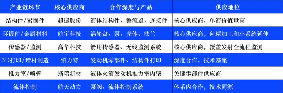 1. 核心观点与投资逻辑摘要核心观点:中科宇航作为国内商业航天“国家队”混合所有制的代表,其IPO辅导备案的完成及科创板第五套上市标准的明确适用,标志着中国商业航天从“技术验证期”正式迈入“资本驱动+产能释放”的产业化爆发期。投资逻辑链条:1. 事件驱动(Event):中科宇航等头部火箭公司完成IPO辅导备案,叠加科创板第五套标准(允许未盈利火箭企业上市)的政策松绑,打通了高投入行业的退出与融资通道。2. 传导机制(Transmission):IPO融资→扩充产能/研发液体可回收火箭(力箭二号)→ 上游零部件采购量价齐升 → 核心供应商业绩兑现。3. 价值重估(Revaluation):市场关注点将从纯粹的“卫星组网预期”转向“火箭发射能力的实质性释放”。具备“高单机价值量”、“独家/核心卡位”、“新工艺降本”特征的上游供应商将迎来戴维斯双击。风险提示:新型号火箭首飞失败风险、IPO进程不及预期、下游星座组网资金到位情况。2. 事件定性:中科宇航IPO是行业资本化的“发令枪”2.1 资本进程加速:从“辅导”到“冲刺”根据最新市场信息,中科宇航已于2025年下半年完成IPO辅导备案,正式加入冲击资本市场的头部阵营。作为中科院力学所孵化的企业,中科宇航具备独特的“技术+体制”双重优势:技术路线:已成功发射“力箭一号”(固体),正在攻坚“力箭二号”(液体、可回收),预计2025年重点攻坚液体火箭方向。估值预期:市场预期其IPO前估值已超百亿,上市后市值有望冲击千亿规模,2026年有望实现IPO。2.2 政策底座夯实:科创板第五套标准上交所发布的《商业火箭企业适用科创板第五套上市标准》是指引行业发展的关键变量。该政策明确支持在关键零部件(如发动机)取得突破、实现中大型运载火箭成功入轨的未盈利企业上市。这解决了商业火箭公司“研发投入大、周期长、盈利难”的融资痛点,直接为中科宇航、蓝箭航天等头部企业的上市扫清了财务指标障碍。3. 产业链深度梳理:中科宇航的核心朋友圈中科宇航的供应链呈现出高度的“头部集中”和“民企渗透”特征。我们根据文档梳理出以下核心供应商体系: