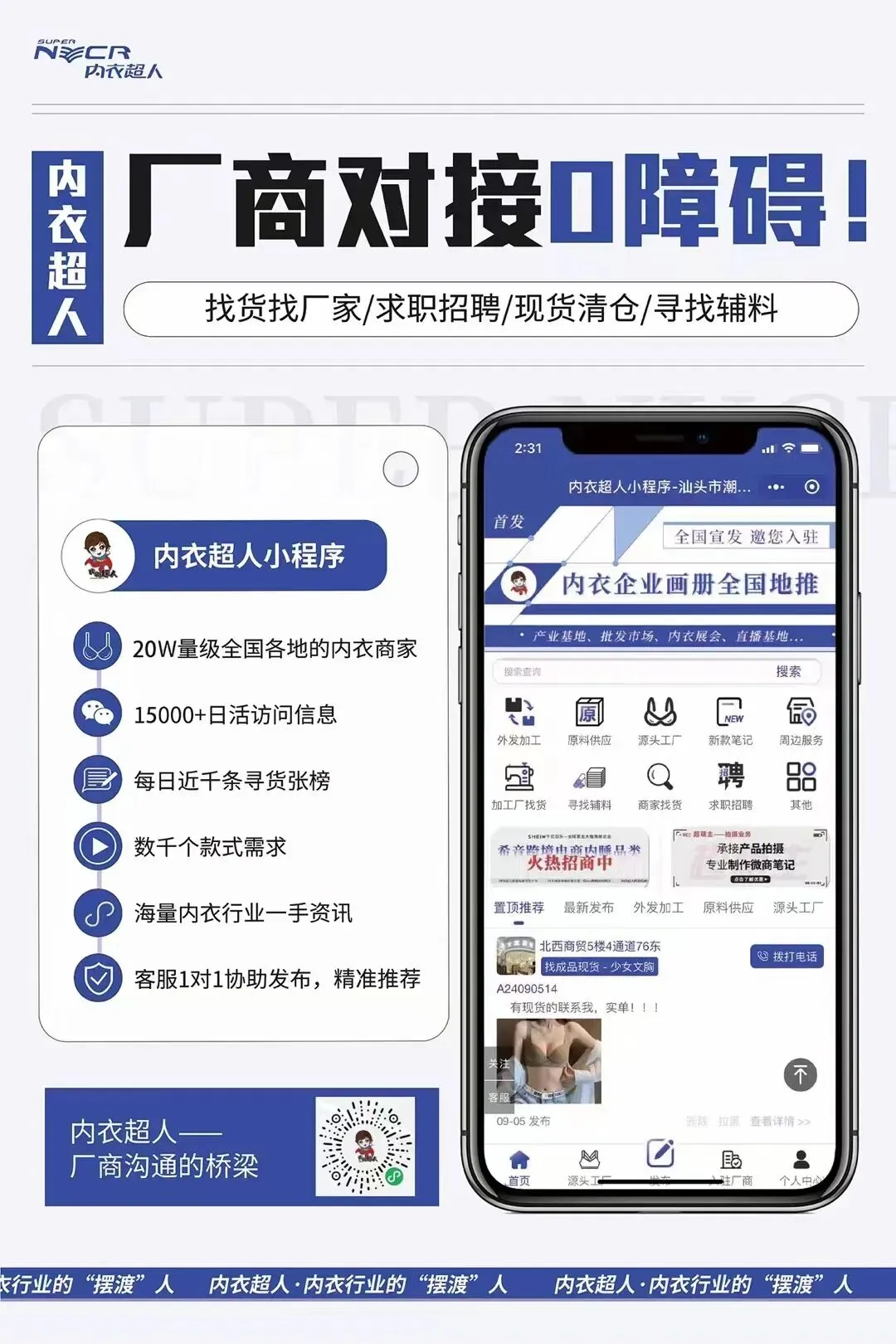 内衣超人小程序:专为内衣行业从业者打造的优质交流平台,汇聚全国内衣厂家、商家、采采购商,行业从业者等核心人群。