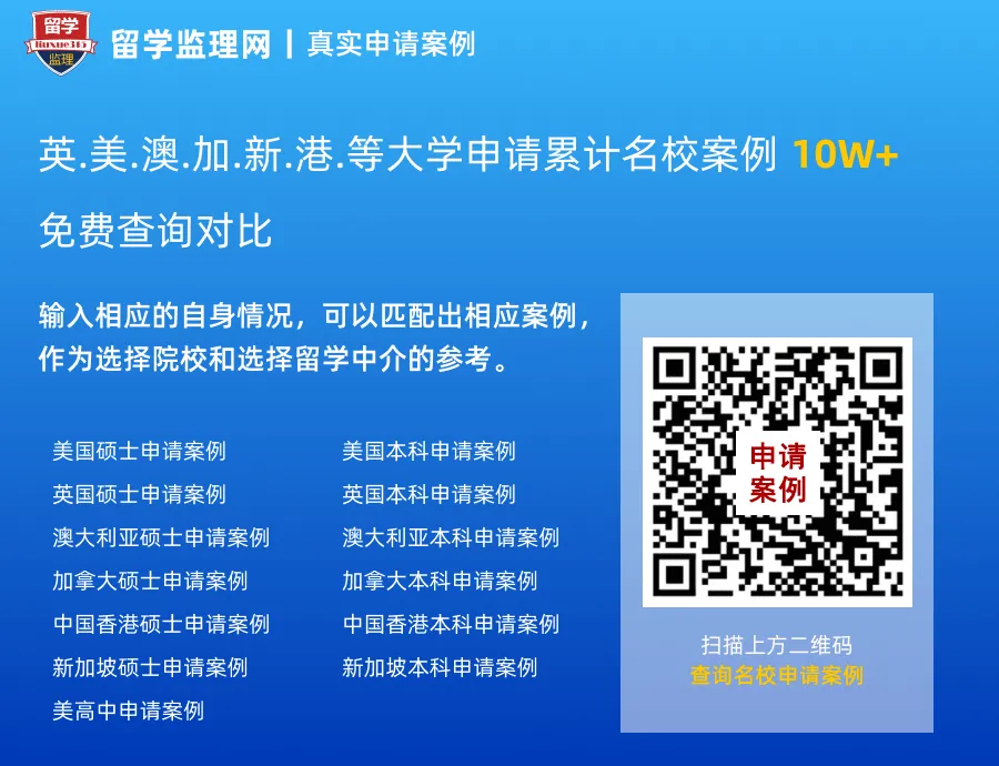 留学监理网研发的留学志愿参考系统获得国家软件著作权注册认证,自2011年以来,积累了大量经由留学监理网服务的学生和经审核的留学中介提供的真实案例。如果你对自己的条件不确定能申请什么样的大学?或者选择什么专业?可使用“留学志愿参考系统”,先做个留学定位测试。