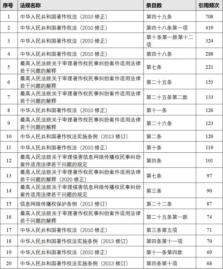 此处统计了所有被援引的高频法条,其中,高频实体法条见下表:(内容见附件)