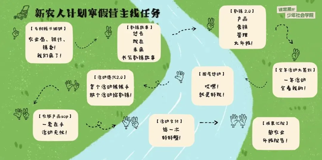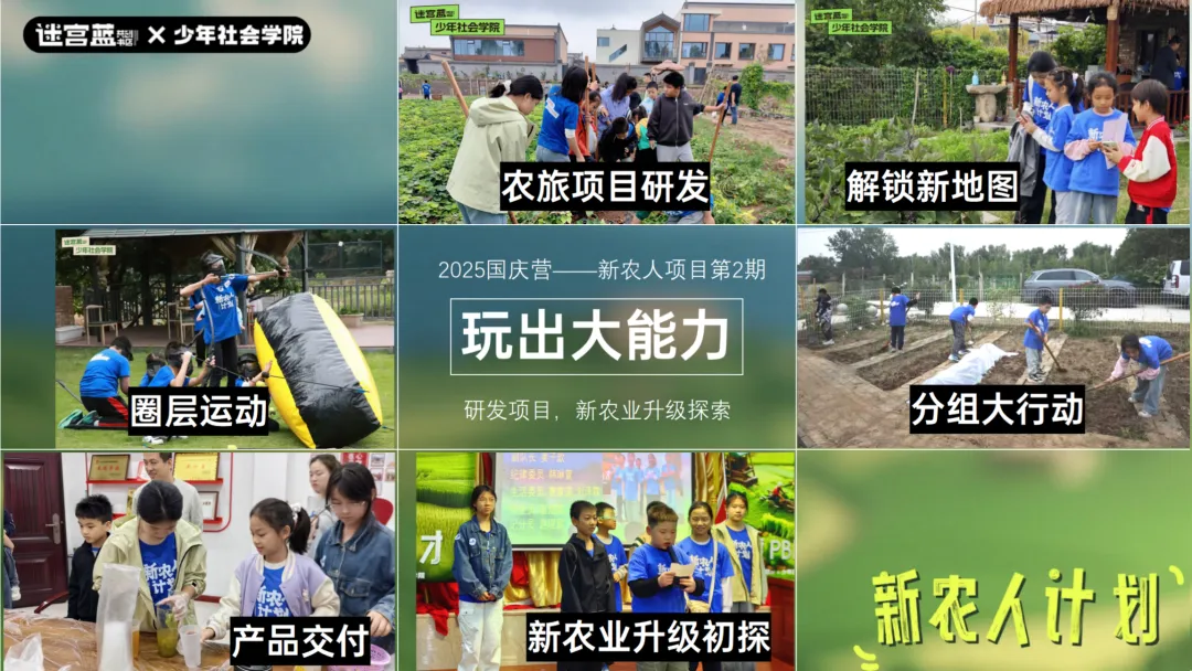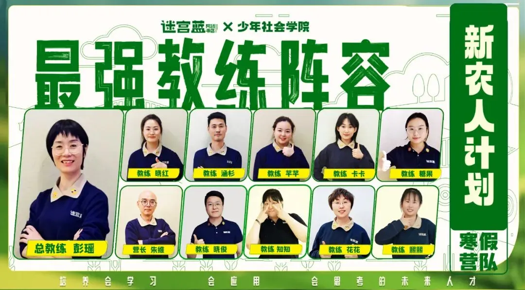 「本次新农人营由迷宫蓝资深项目制教学团队带队,他们是深耕少儿PBL实践教育多年的“双料专家”,——既是精通项目制学习的专业导师,也是懂孩子、会玩闹的成长伙伴。不是单纯的“带队老师”,而是孩子的“项目合伙人”」