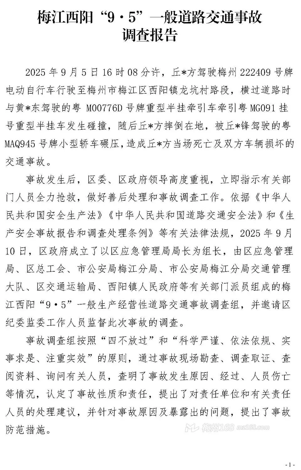1人当场死亡!梅州“9·5”事故调查报告公布!