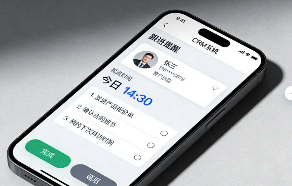 关键需求:销售不用记“该跟进谁”,系统能自动发提醒(比如“客户要的报价单还没发”“寄样后3天回访”)。