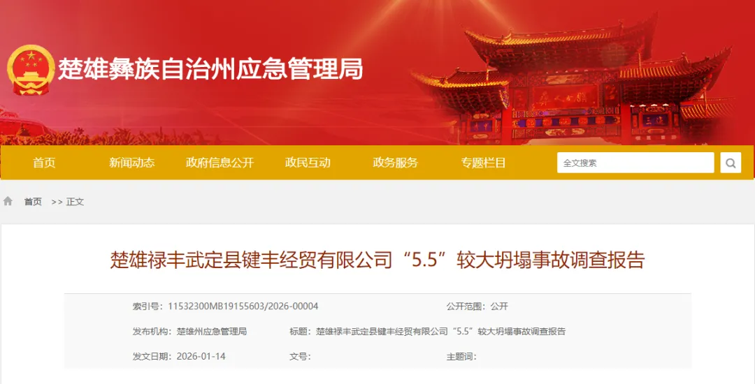 来源:楚雄禄丰武定县键丰经贸有限公司"5.5"'较大坍塌事故调查报告