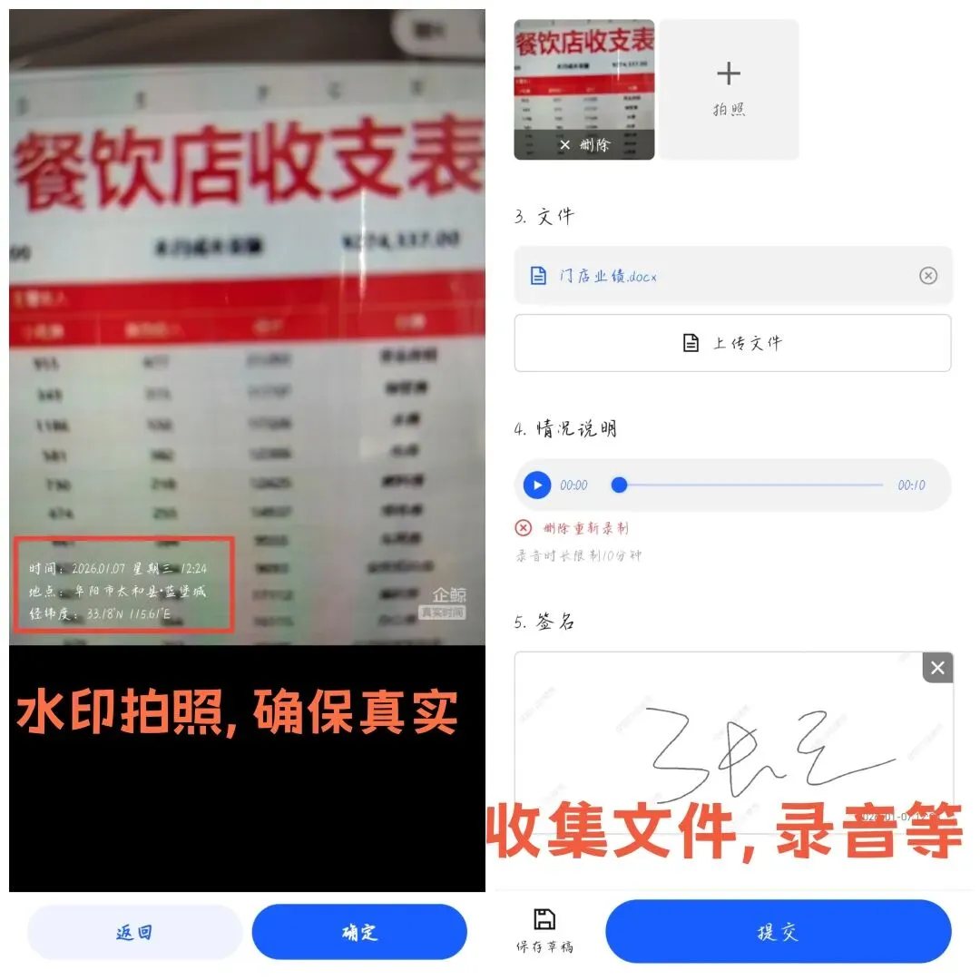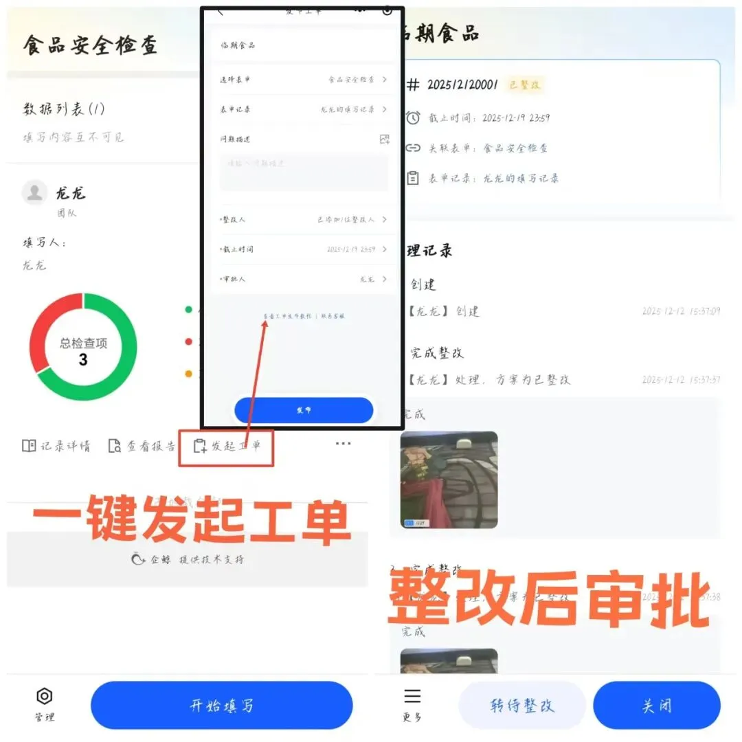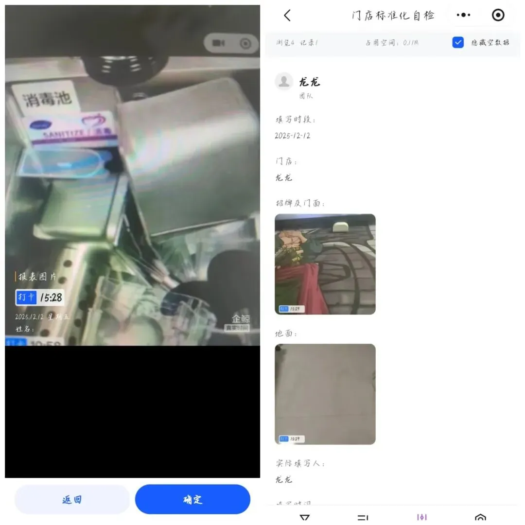 比如冰箱温度必须拍照(带时间地点水印),消毒记录必须上传 —— 检查结果全程留痕