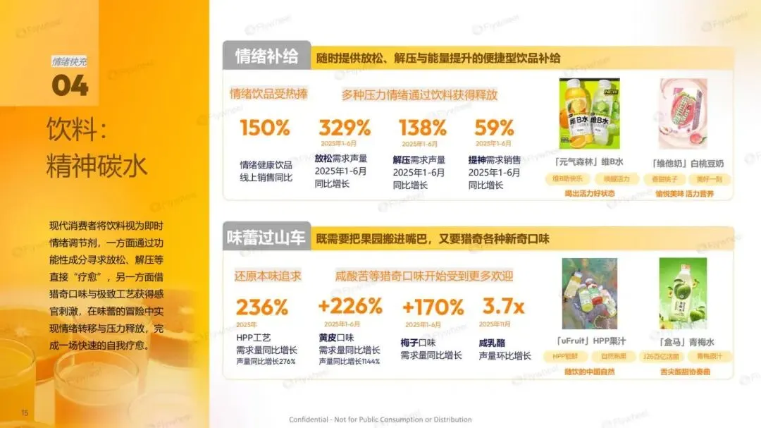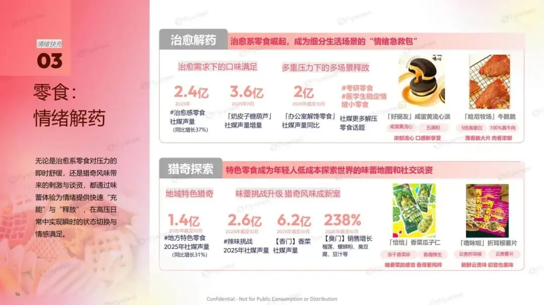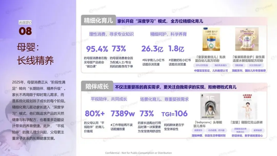 报告梳理了八大消费品的趋势图谱,分为“情绪快充”与“长效定心”两条主线。“情绪快充”品类包括彩妆、潮玩、零食、饮料,强调即时满足与场景驱动;“长效定心”品类涵盖护肤、家清、保健品、母婴、宠物、户外,注重健康、专业与长期价值。品牌需根据品类特性,设计既能满足当下情绪需求,又能建立长期信任的产品与沟通策略。