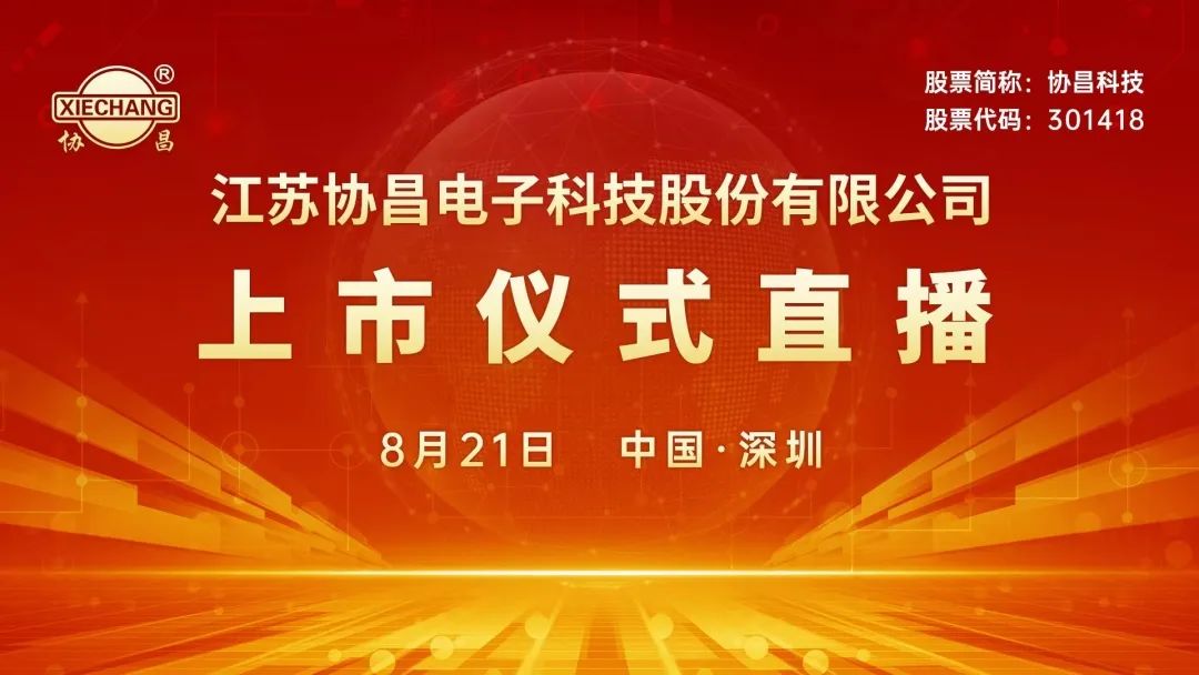 协昌科技新股发行上市仪式于2023年8月21日08:50-09:35举行,全景路演全程直播,敬请期待。