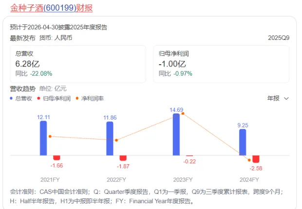 事实上,金种子酒2025年预亏公告中,亦传递了另一则信息——金种子酒出现亏损收窄信号。
