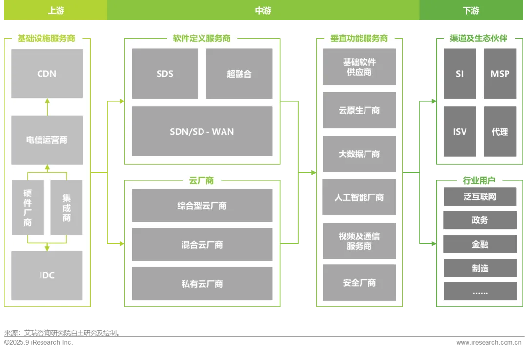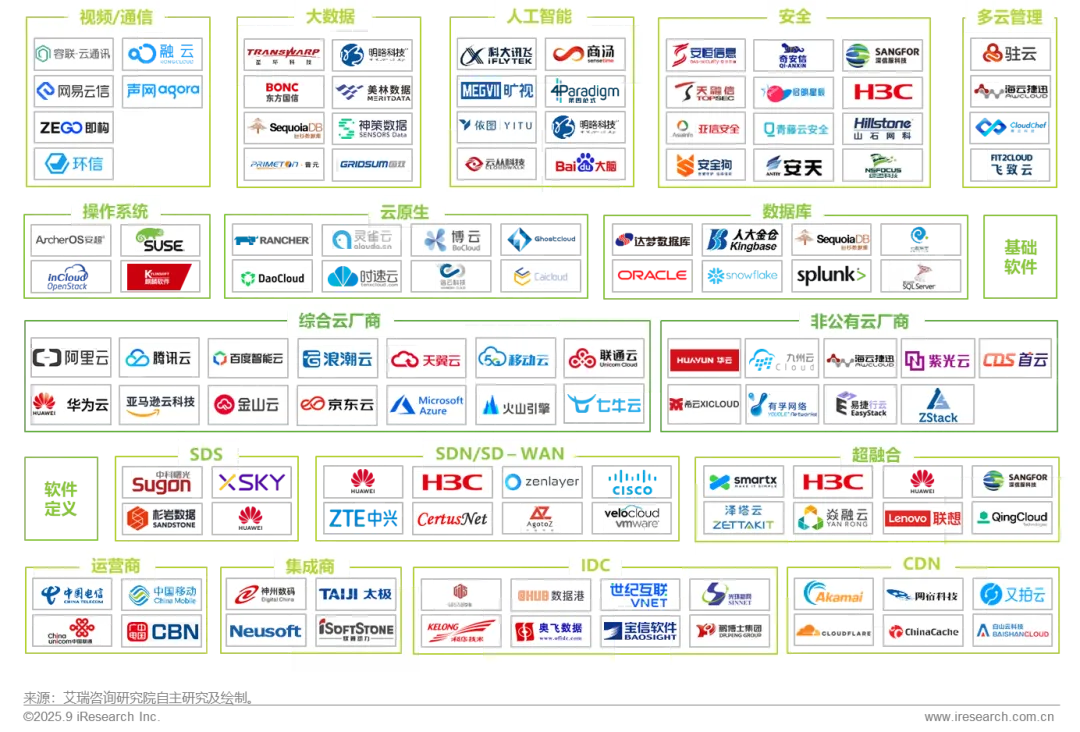 市场特征:人工智能已成为云服务行业建设及业务布局重点。在资源领域,各类参与者持续扩大智算基础设施投入;在技术领域,不断完善AI开发工具,围绕AI智能体重塑技术架构;在生态领域,与行业代表企业及各类ISV达成合作,推动新技术的行业落地。