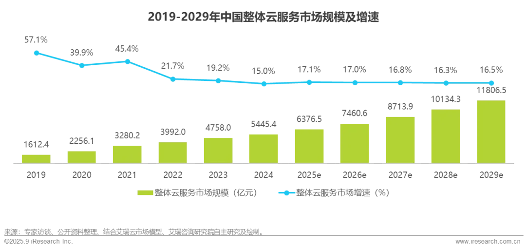 市场概览:2024年中国整体云服务市场规模为5445.4亿元,增速为15%。人工智能加速发展带动云基础设施及云能力平台同步升级,成为驱动中国整体云服务市场增长的关键因素。
