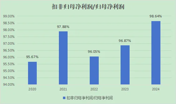 从第二项指标上看,基本可以看出非经常损益占比在2%-4%左右,代表主业还算聚焦专注。