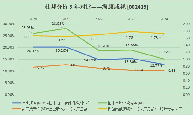 扣非ROE的走势和NPM的走势基本类似,也就是说EM的上升带来的些许提升基本被AT的下降抵消了。