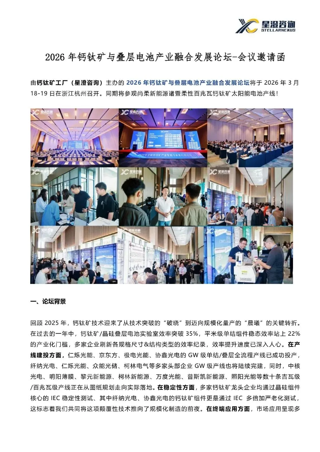 钙钛矿工厂(星澄咨询)定于2026年3月18-19日举办2026年钙钛矿与钙钛矿叠层电池产业融合发展论坛。同期将参观尚柔新能源百兆瓦柔性钙钛矿太阳能电池生产线!(参观同期开放AM0级空间环境测试中心与AM1.5级地面光伏测试中心)。本届论坛将主题明确锚定为“稳效协同”与“合纵共建”。我们诚挚地邀请您——无论是深耕多年的产业巨头,还是锐意创新的技术先锋,或是化为普照世界的“朝阳”。