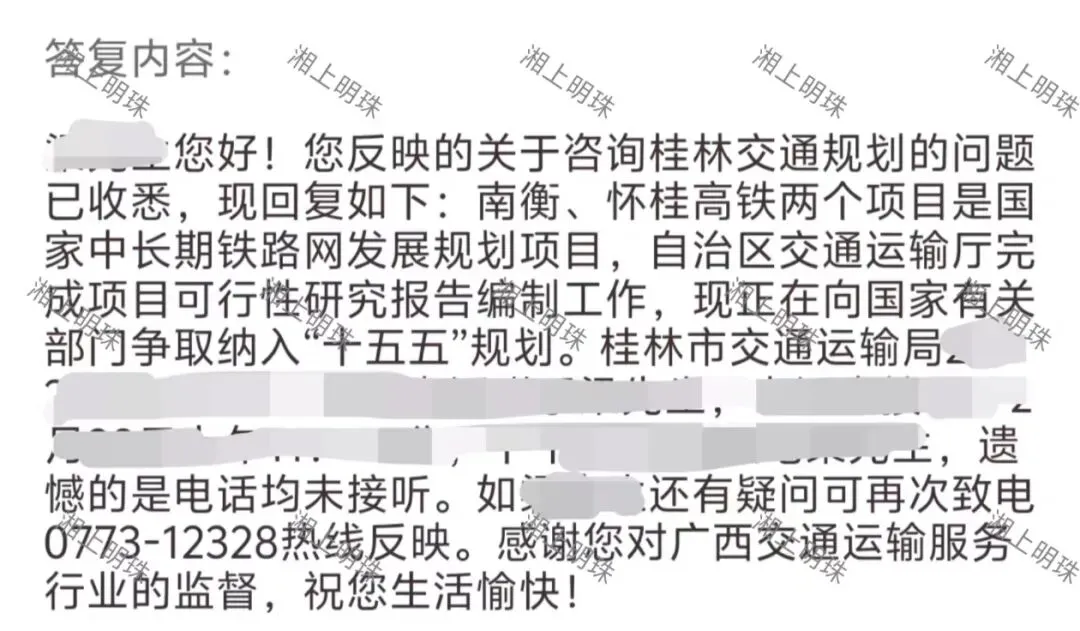据桂林交通运输局答复,南衡、怀桂高铁两个项目是国家中长期铁路网发展规划项目,