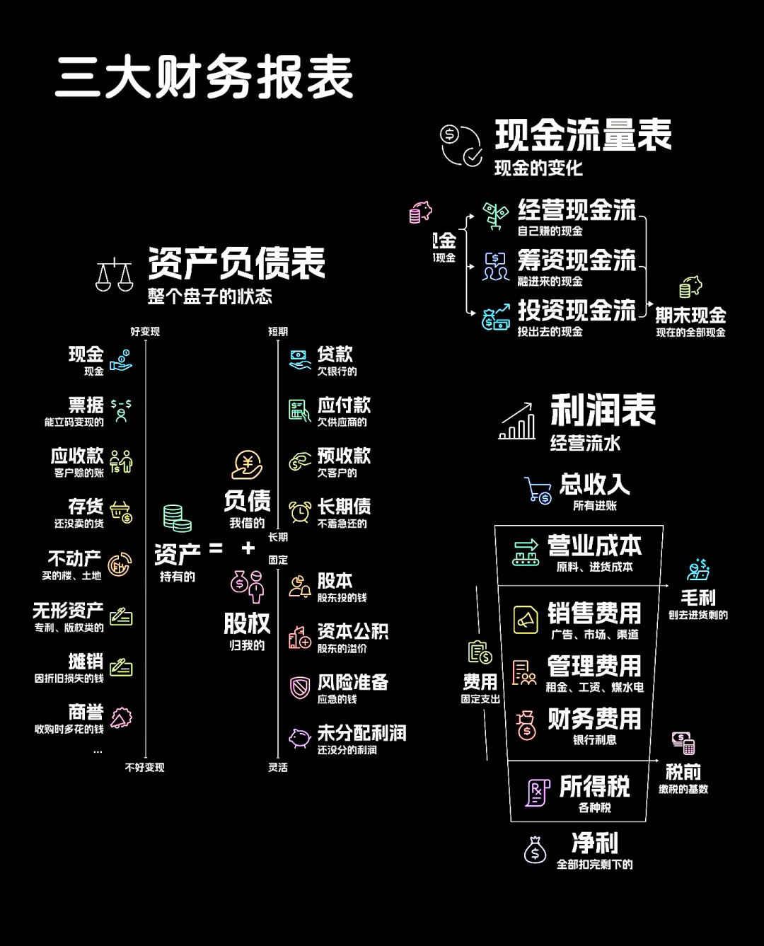现金流量表:重中之重!看经营现金流是否为正且持续增长。这比利润更能反映真实赚钱能力。
