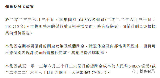 另外值得我们注意的一点,半年报显示二季度末员工人数为10.45万人,比一季度末下降了1718人,比历史最高点2022年一季度末更是下降了1.17万人。随着人员的减少,员工薪酬继续下降到267.70亿元(23年Q1为272.99),同比-2.83%。自去年提出要降本增效之后,效果已经显现出来了。