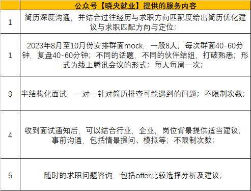 关于暑期实习、24届秋招面试mock,晓央就业能够提供的形式与内容如下: