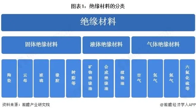 按照物理分类,绝缘材料可以分为固体绝缘材料、液体绝缘材料、气体绝缘材料。