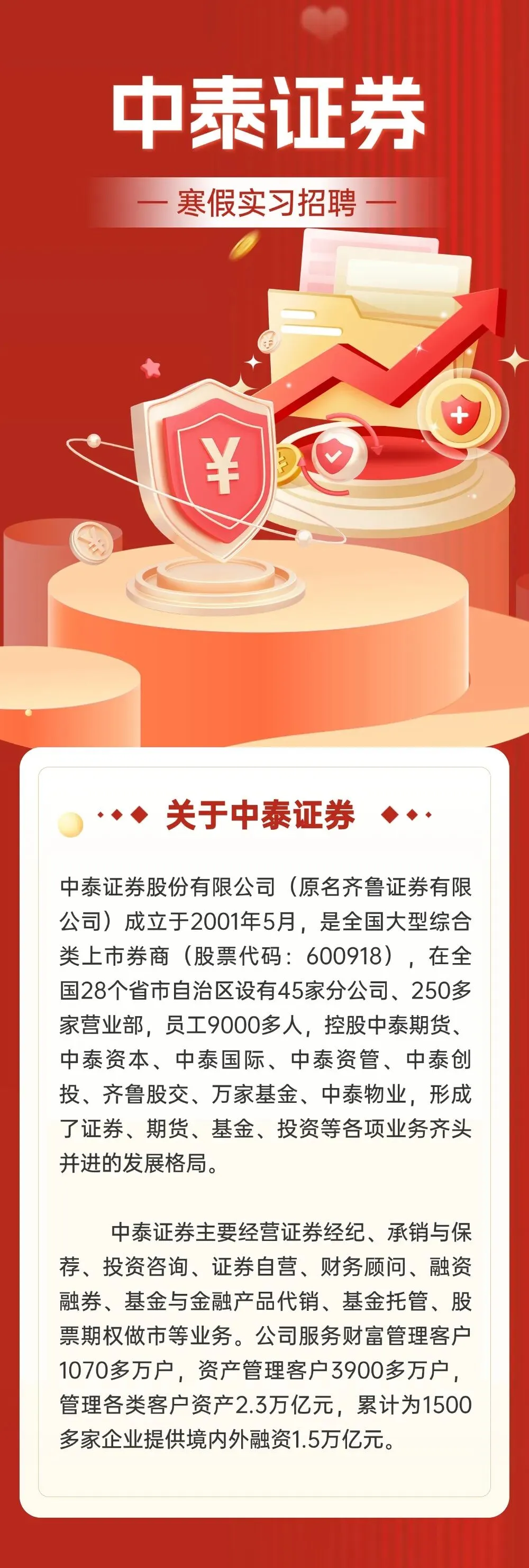 金融实习!中泰证券招聘实习生!行研、投行、固收...