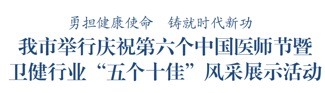 活动中,市卫健委通报表扬了全市“十佳院长”“十佳医生”“十佳护士”“十佳公卫”“十佳村医”,获奖代表作交流发言并宣读了医师誓言。