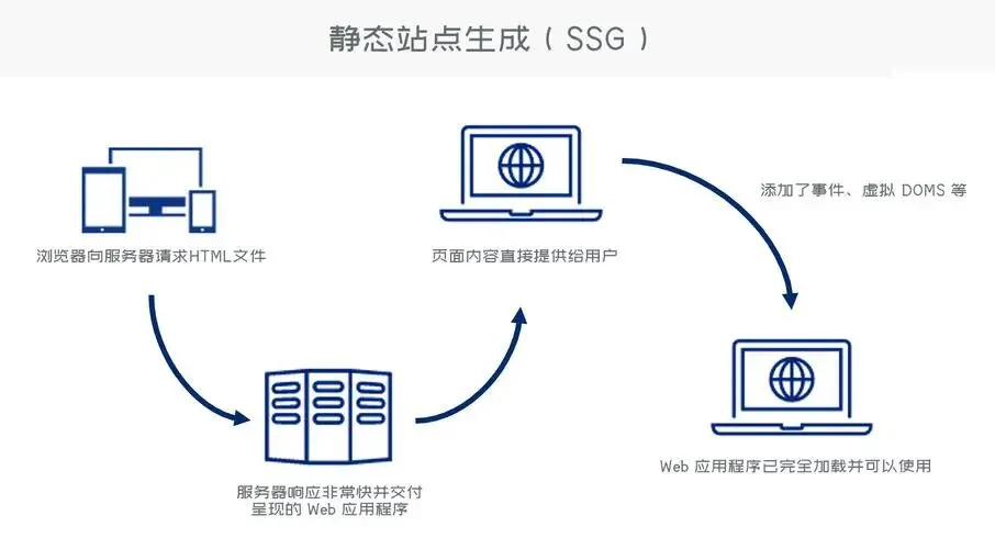 工作原理: 在网站构建时(Build Time),Next.js会提前将所有页面渲染成静态的HTML文件。当用户请求时,服务器直接返回这个已经生成好的HTML文件,无需任何实时计算。
