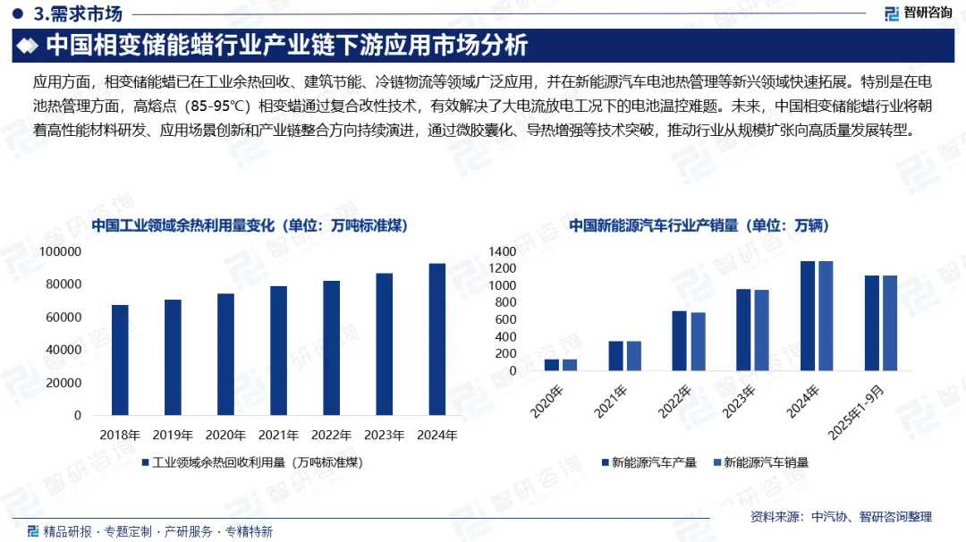 相变储能蜡的应用边界正从相对集中的工业余热回收、建筑节能等领域,向更多元、更前沿的交叉应用场景快速渗透。其核心价值将不再局限于单纯的“储热与释热”,而是作为精密的热管理解决方案,深度融入国民经济的关键产业。在新能源领域,它将成为动力电池热管理系统的核心调控材料,通过精准吸热保障电池包在高倍率放电下的安全窗口;在电子信息领域,伴随5G基站、人工智能算力中心功耗持续攀升,相变储能蜡将成为高效被动散热方案的关键组成部分。此外,在智能纺织、农业温室、医疗冷链乃至航空航天等细分市场,对材料相变温度、潜热值及形态的定制化需求将日益凸显,推动行业从提供标准化产品向提供“材料-结构-系统”一体化解决方案转变,实现价值提升。