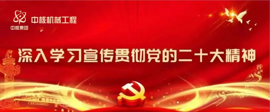 整个图案以“核电蓝+中国红”为主色调,涵义是:中核机械工程深耕核电建设市场,在核电一体化建设中主力担当;中核机械工程人发扬“四个一切”的核工业精神并践行“强核报国,创新奉献”的新时代核工业精神,传承好核工业红色基因。