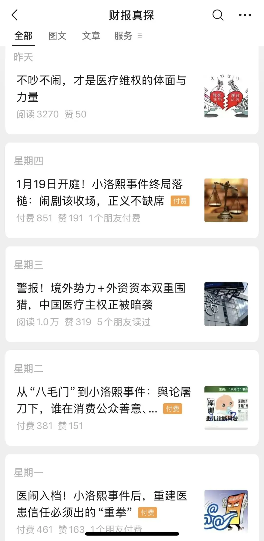 其实一开始看到“财报真探”的文章,我还是有点惊喜的,毕竟有了跟小洛熙父母那边相反的声音了,看多了电子爸妈的无理“喷水”,听到另一种声音就会多留意一下,多关注一下,前期看起来也有理性分析,受到很多站医院那边的网友追捧。