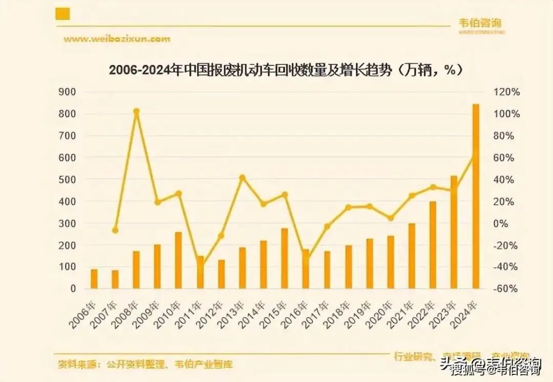 一、全国报废机动车的回收量显著增长,2025年将突破千万大关