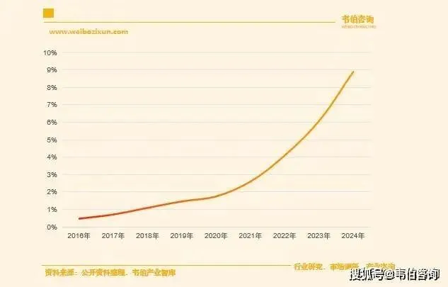 图表4:2016-2024年中国新能源汽车保有量占汽车保有量的比例及增长趋势(%)