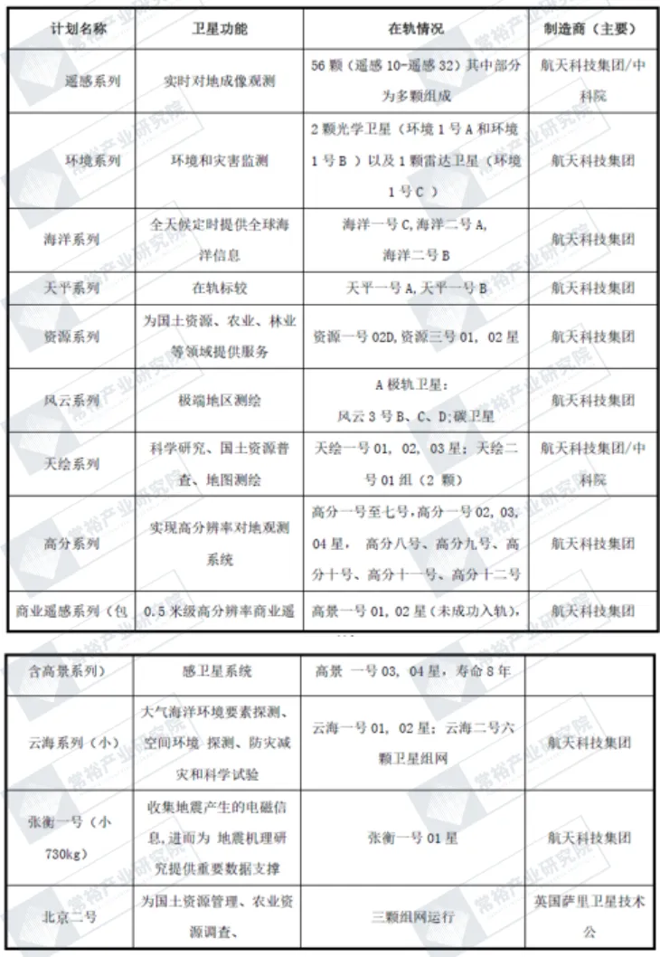 通信卫星方面,目前在轨的通信卫星主要包括航天科技集团的中星卫星系列、亚太卫星系列、天链一号、中信集团的亚洲卫星系列以及中国电信运营的天通一号卫星系列等。而以上通信卫星一般为大型卫星,寿命基本为15 年左右(天链一号为5 年左右),同时该类卫星基本功能为传统的广播电视信号传输、手机移动通信、应急通信以及转发器租赁等。