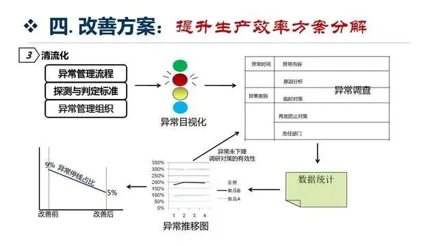8. 建立精益指标监控体系,定期统计分析生产效率、OEE、库存周转率、产品合格率等核心指标,对比改进目标,及时调整改进策略;