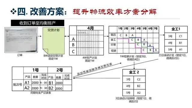 7. 针对生产等待浪费:优化生产排程,建立“以客户订单为导向”的拉动式生产模式,减少过量生产;梳理物料供应流程,确保物料及时配送,避免生产线等待;