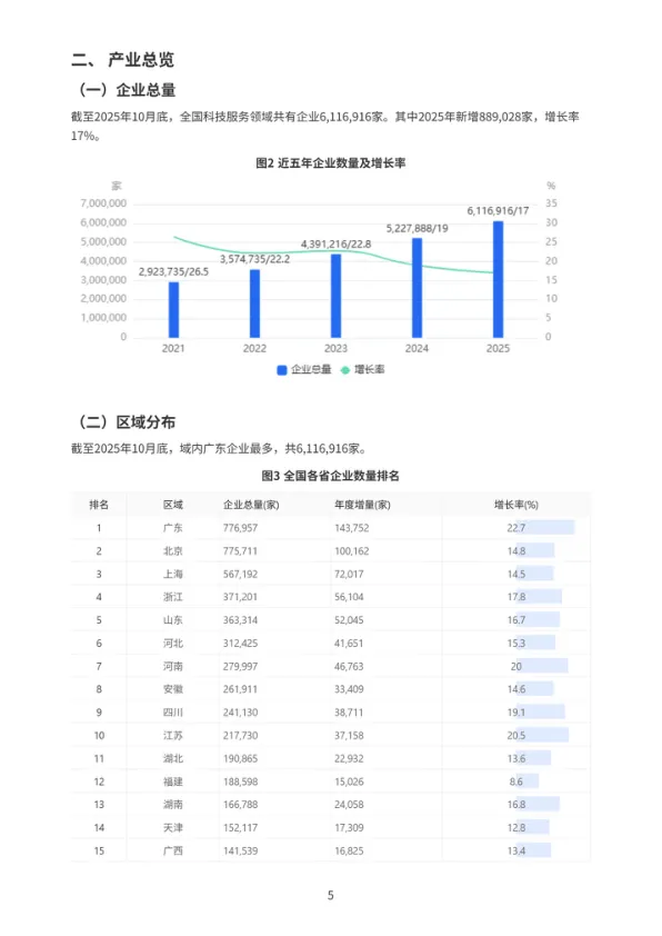 - 体量巨大: 全国共有超611万家科技服务企业,2025年新增近89万家,年增长率高达17%,是名副其实的朝阳产业。