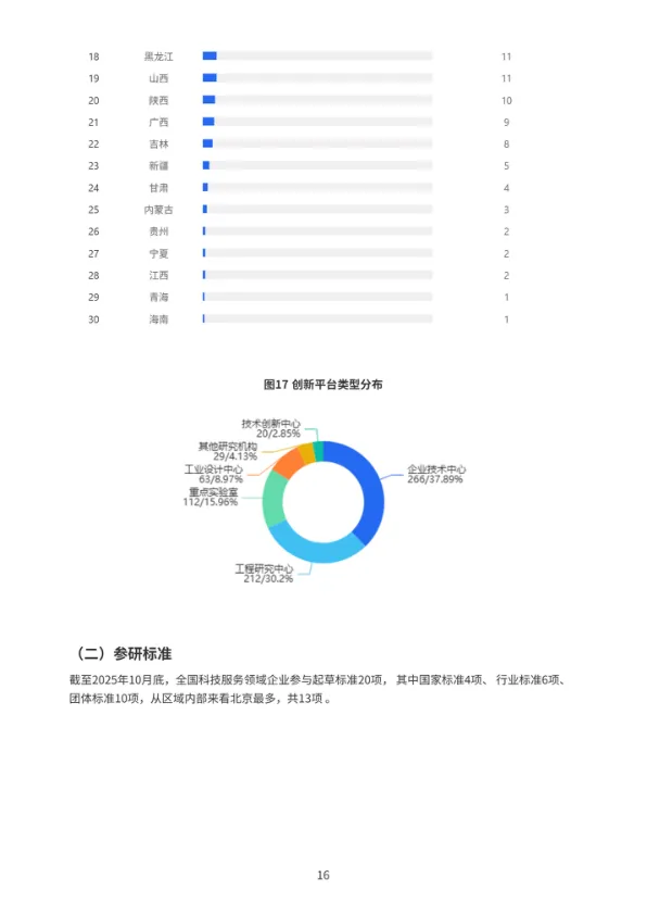 - 北京:优质企业密度最高。在上市企业(322家)、高新技术企业(2.18万家)、国家级小巨人(930家)、创新平台(175家)、参研标准(13项)和软件著作权(125万件)等几乎所有高价值指标上都遥遥领先,是无可争议的“创新策源地”。