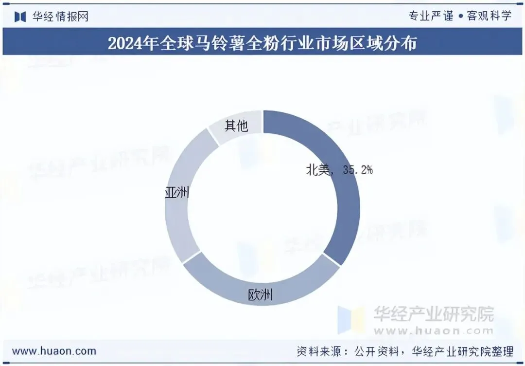 从全球马铃薯全粉行业市场区域分布来看,2024年成熟市场仍占据主导地位。其中,北美市场以35.2%的份额领跑全球,这得益于当地消费者对便捷化、营养化食品的高需求,以及快餐、烘焙产业对马铃薯全粉的广泛应用。欧洲市场紧随其后,占比达30.1%,作为马铃薯消费传统区域,其稳定的饮食习惯与成熟的食品加工体系,为市场提供了持续支撑。