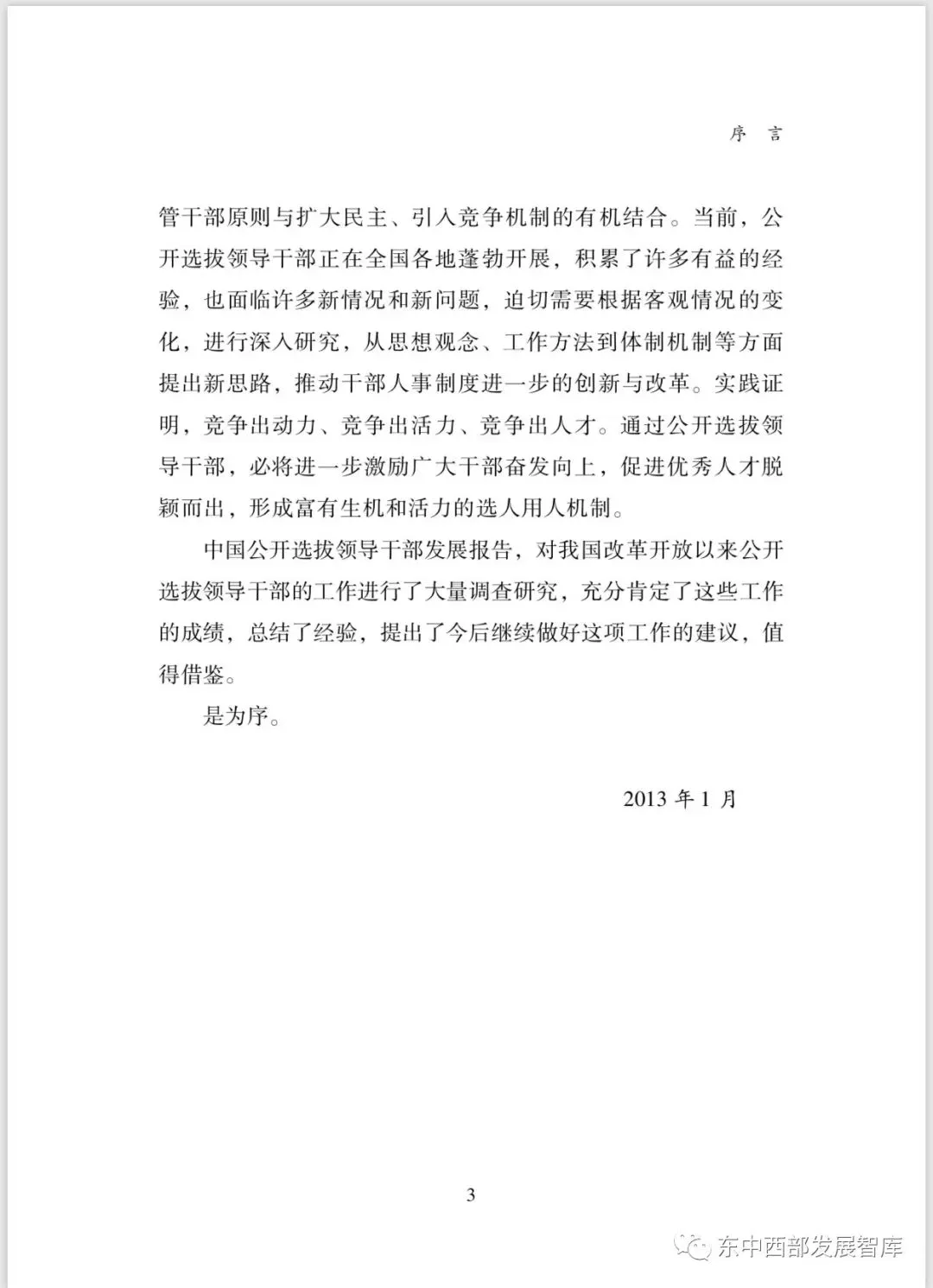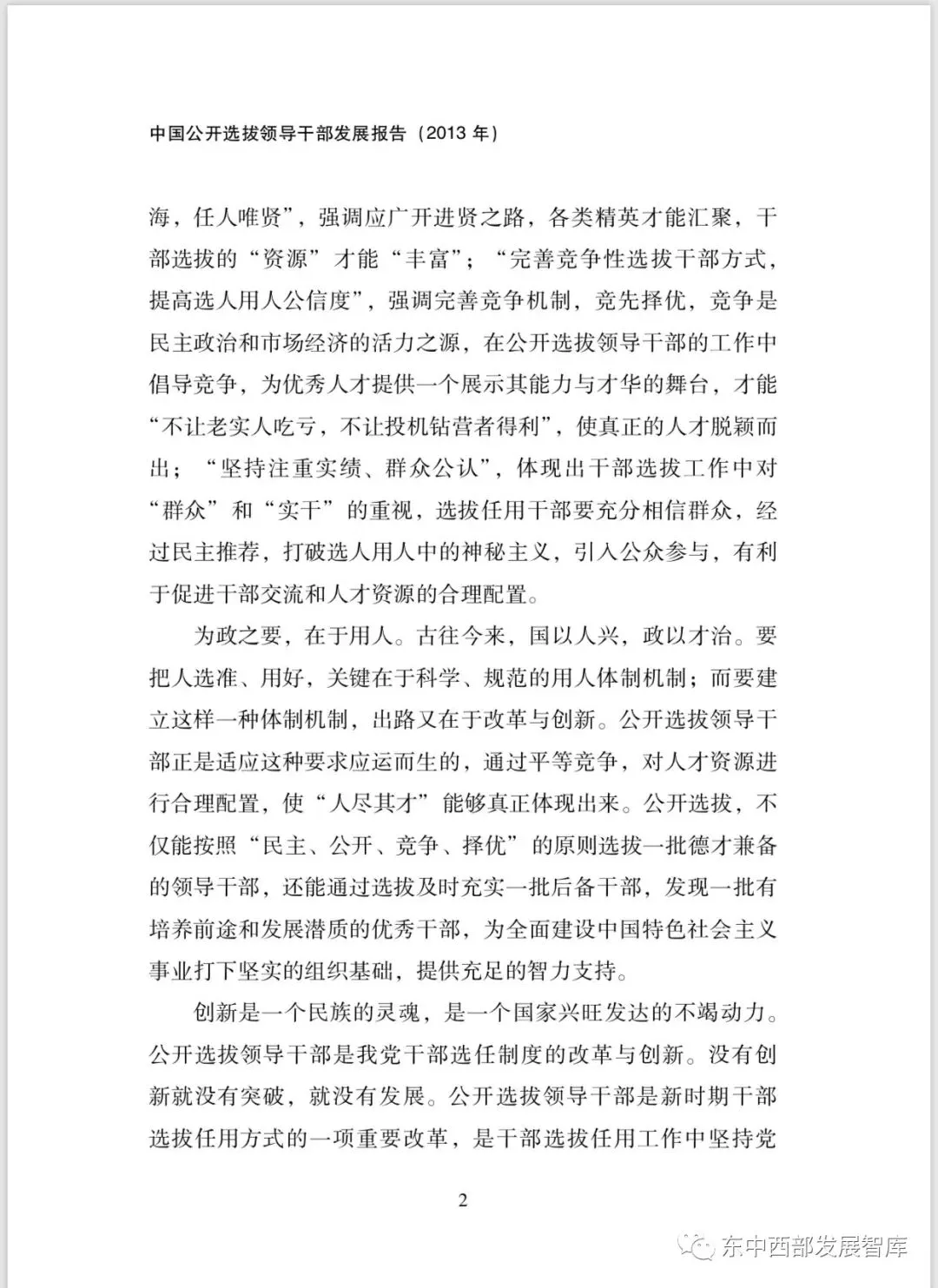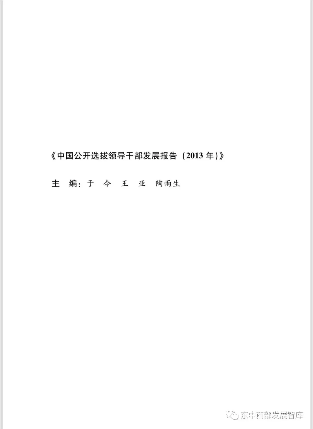 本报告是中国第一份系统性公开选拔研究报告。作为智库研究成果,首次系统性地分析了公开选拔制度的理论意义与实践价值,并在横向与纵向上与其他干部选拔制度做了对比分析。
