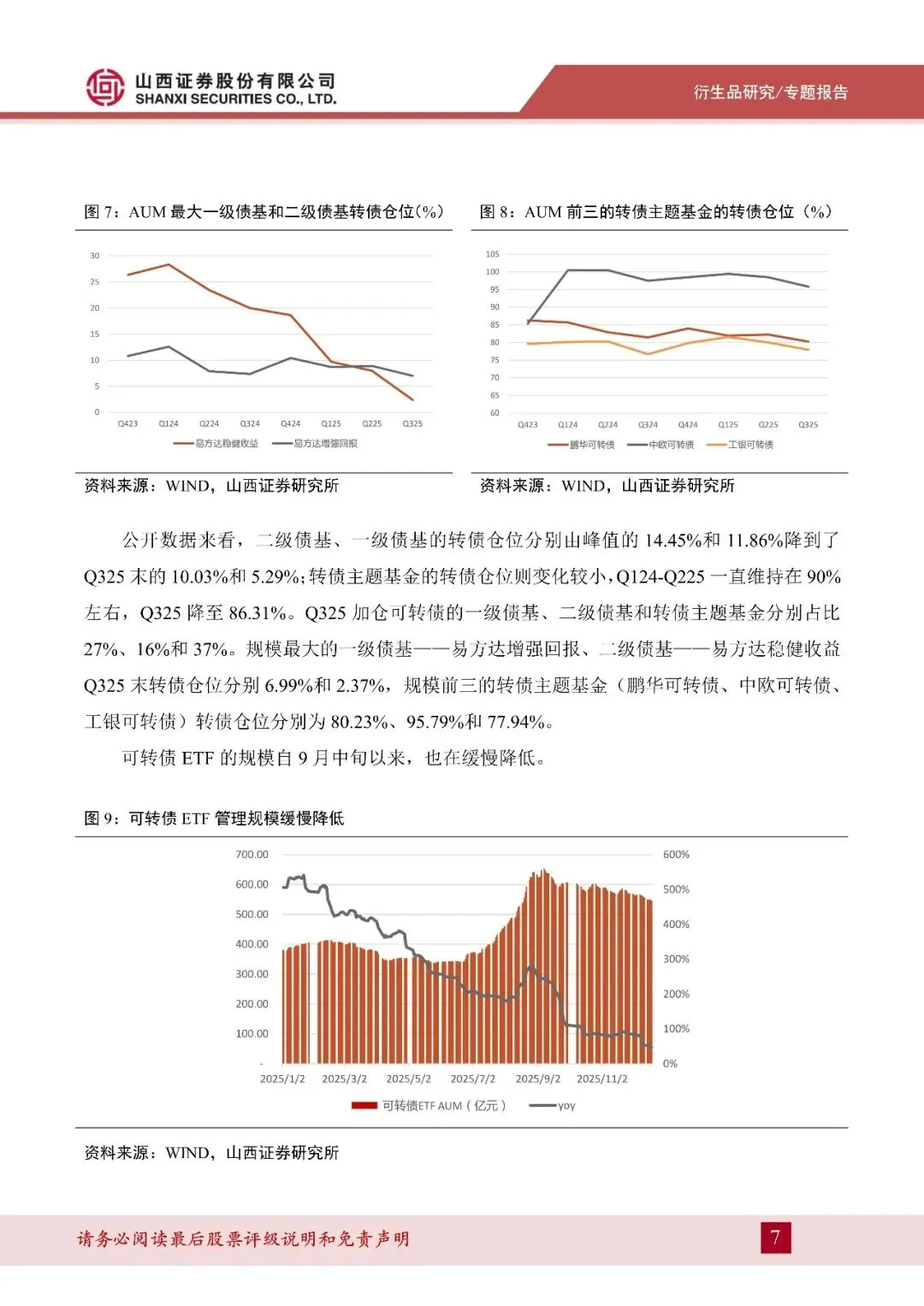Q325,投资转债的主要机构资金——一级债基、二级债基和转债主题基金多数对转债进行了减仓。同时,9 月中旬以来,转债 ETF AUM 缓慢降低。