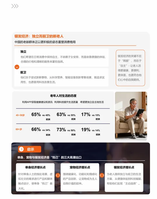 从“悦人”到“悦己”消费动机从追求外界认同转向自我价值实现,消费者更愿为健康、便利、文化认同等“与我相关”的产品和服务付费,AI赋能的智能产品成为“懂我”的陪伴。