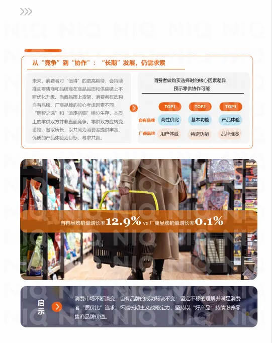 从“低价吸引”到“价值认同”随着供应链成熟和消费者认知转变,自有品牌从“将就选择”变为“明智之选”,通过基础大单品和高端差异化商品满足多元需求,与厂商品牌协作共生。