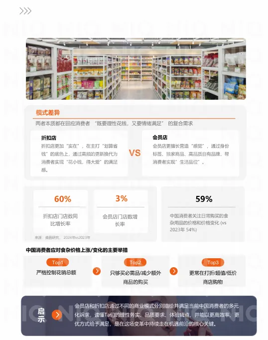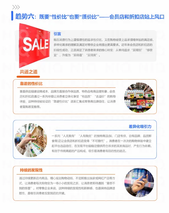 既要“性价比”也要“质价比”会员店和折扣店通过垂直供应链、独家商品和持续发现性,满足消费者“理性花钱”与“情绪满足”的复合需求,分别侧重“生活品位”和“划算省钱”。