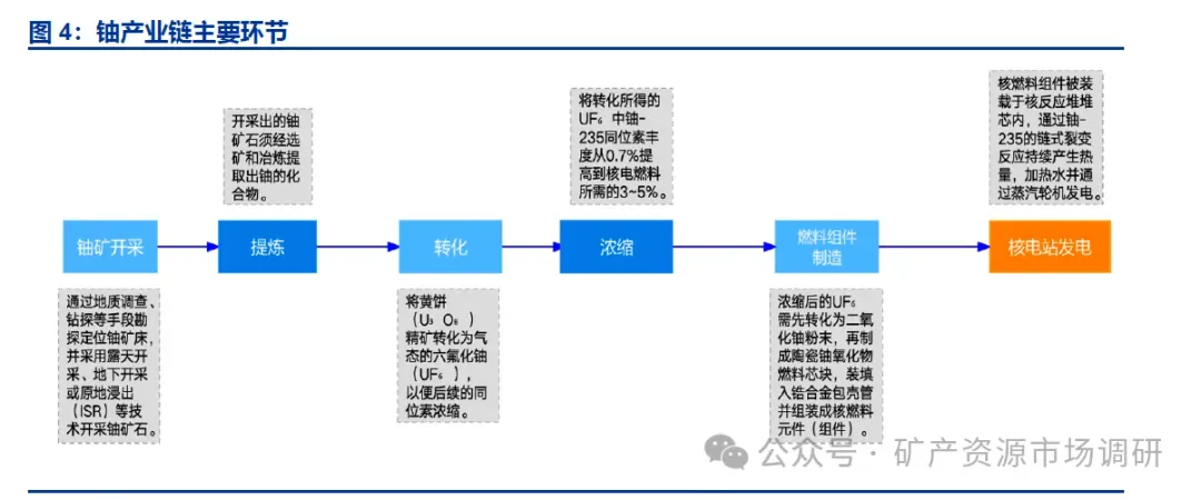 铀产业链的特点是技术密集且高度集中,其上游和中游环节主要由少数大型企业控制,