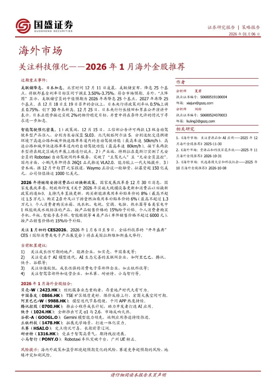 海外市场:关注科技催化——2026年1月海外金股推荐-260106-国盛证券-18页